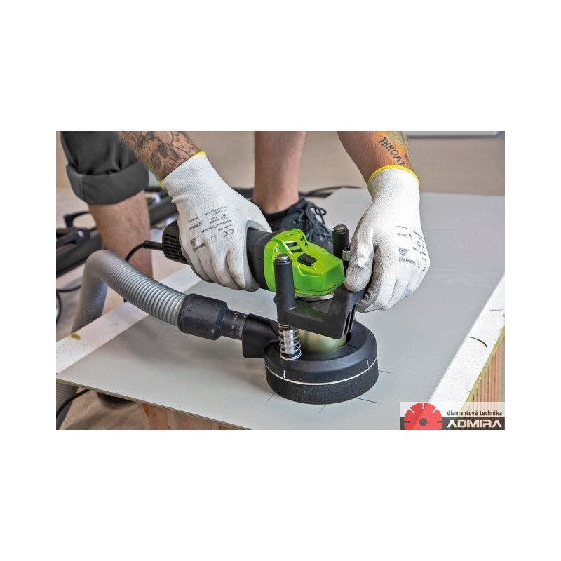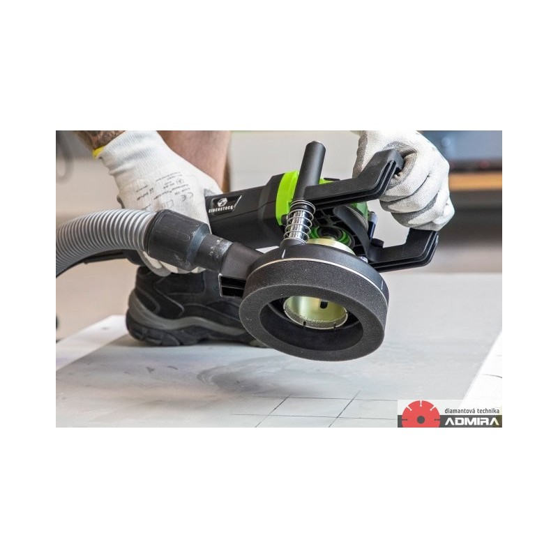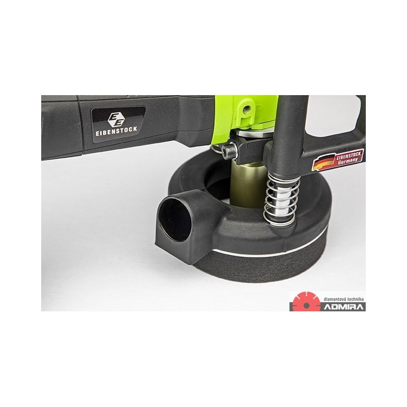 Profesionální vrtačka pro suché vrtaní v obkladech a dlažbách až do průměru 68mm. Vrtačka Eibenstock EFB 68 je v podstatě plynule regulovatelná úhlová bruska opatřená speciálním krytem a posuvem, takže přesné zaměření vrtaného otvoru je mnohem snadnější než s klasickou úhlovou bruskou. Vývod na externí odsávání je samozřejmostí.