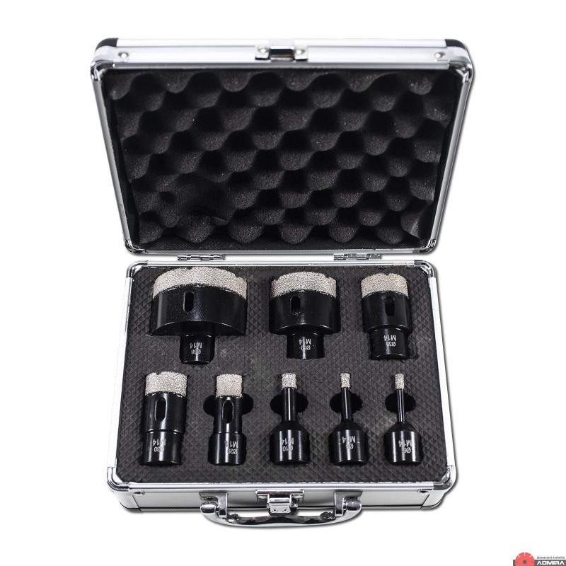 Sada diamantových korunek pro přesné vrtání otvorů do obkladů a dlažeb. Určeno pro občasné a hobby použití.